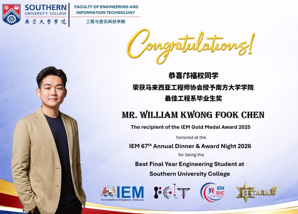Mr. William Kwong, a final year student from the Department of Electrical and Electronics Engineering, has just been honored with the prestigious IEM Gold Medal Award 2025 at the IEM 67th Annual Dinner & Award Night 2026. This remarkable achievement is a testament to his exceptional dedication and hard work in the field of engineering. ![]()
