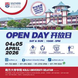 Starting today until Friday, 6 March 2026, the Student Recruitment Office of Southern University College will extend our working hours! If you’re interested in our courses, come and meet us!